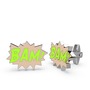 14 ayar beyaz altın kol düğmesi (Neon yeşil mineli)