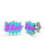 18 ayar beyaz altın kol düğmesi (Neon pembe mineli)