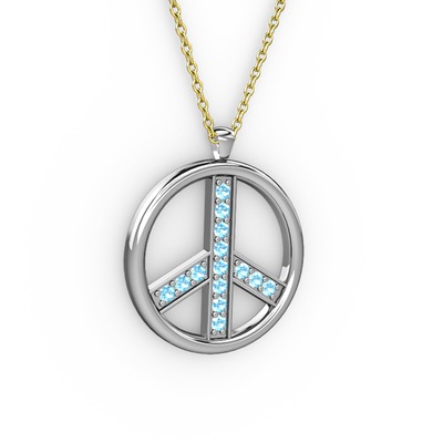 Akuamarin 14 ayar beyaz altın kolye (40 cm altın rolo zincir)