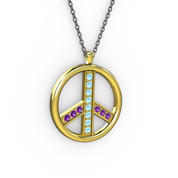 Akuamarin ve ametist 14 ayar altın kolye (40 cm gümüş rolo zincir)
