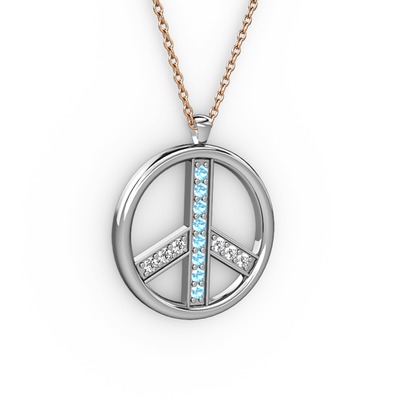 Akuamarin ve beyaz zirkon 8 ayar beyaz altın kolye (40 cm rose altın rolo zincir)