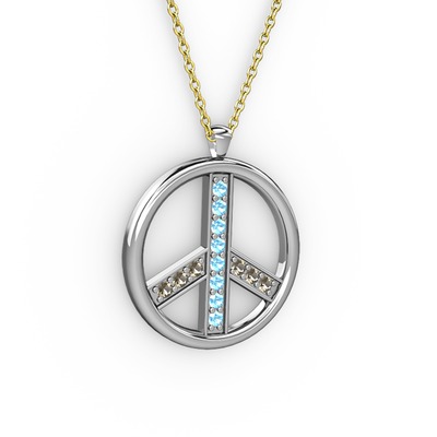 Akuamarin ve dumanlı kuvars 8 ayar beyaz altın kolye (40 cm gümüş rolo zincir)