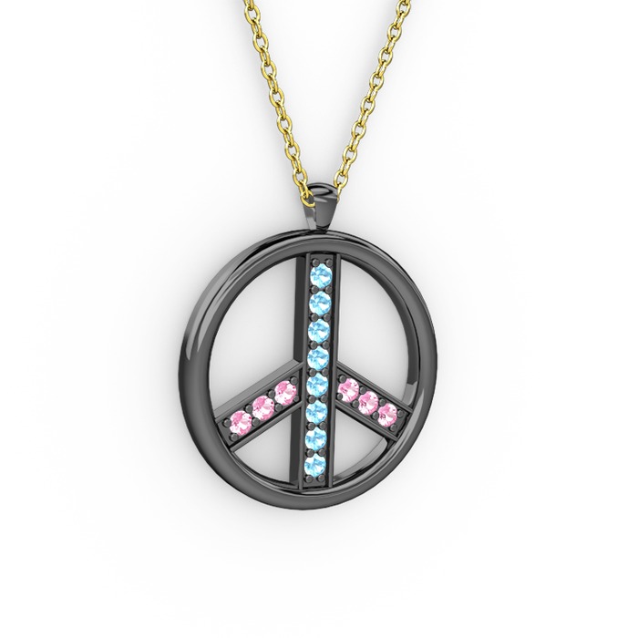 Akuamarin ve pembe kuvars 925 ayar siyah rodyum kaplama gümüş kolye (40 cm gümüş rolo zincir)