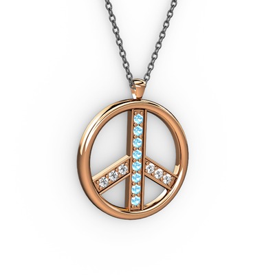 Akuamarin ve swarovski 14 ayar rose altın kolye (40 cm gümüş rolo zincir)