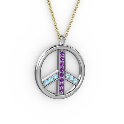 Ametist ve akuamarin 18 ayar beyaz altın kolye (40 cm altın rolo zincir)
