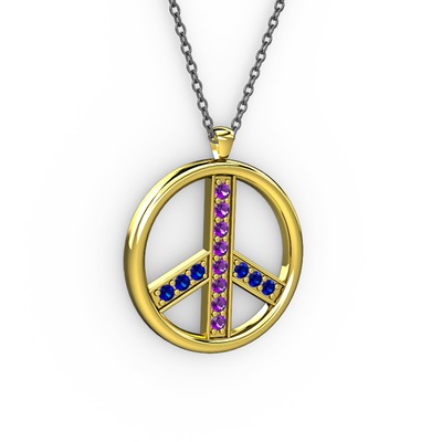 Ametist ve lab safir 18 ayar altın kolye (40 cm gümüş rolo zincir)