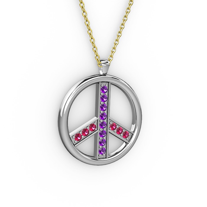 Ametist ve rodolit garnet 18 ayar beyaz altın kolye (40 cm altın rolo zincir)