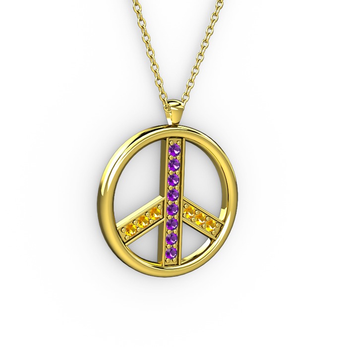 Ametist ve sitrin 18 ayar altın kolye (40 cm altın rolo zincir)