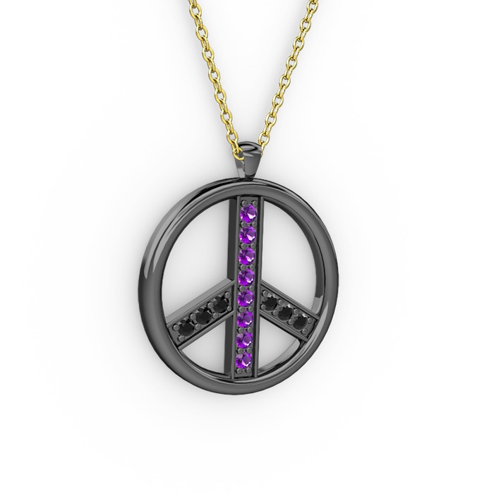 Ametist ve siyah zirkon 925 ayar siyah rodyum kaplama gümüş kolye (40 cm altın rolo zincir)