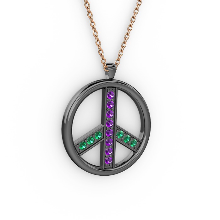 Ametist ve yeşil kuvars 925 ayar siyah rodyum kaplama gümüş kolye (40 cm rose altın rolo zincir)