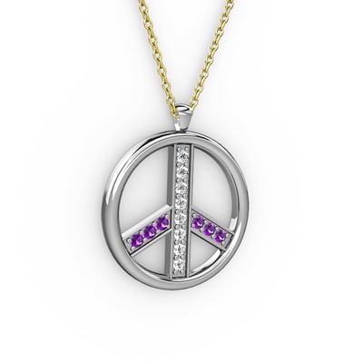 Beyaz zirkon ve ametist 925 ayar gümüş kolye (40 cm altın rolo zincir)