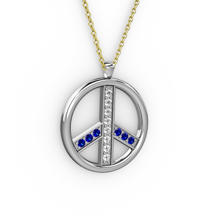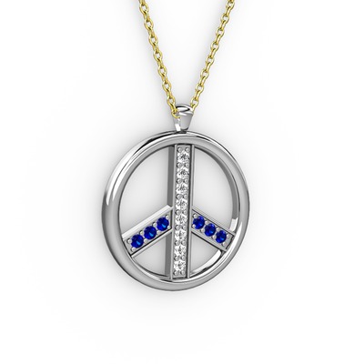 Beyaz zirkon ve lab safir 14 ayar beyaz altın kolye (40 cm altın rolo zincir)