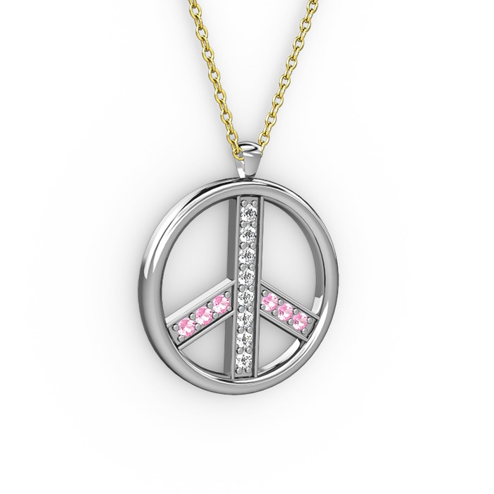 Beyaz zirkon ve pembe kuvars 14 ayar beyaz altın kolye (40 cm altın rolo zincir)