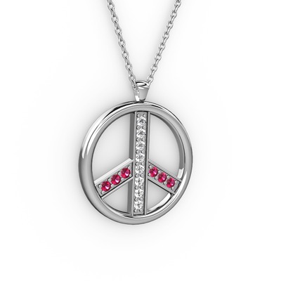Beyaz zirkon ve rodolit garnet 14 ayar beyaz altın kolye (40 cm beyaz altın rolo zincir)