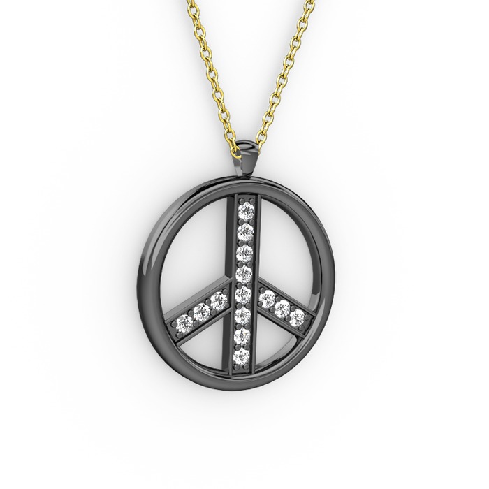 Beyaz zirkon 925 ayar siyah rodyum kaplama gümüş kolye (40 cm altın rolo zincir)