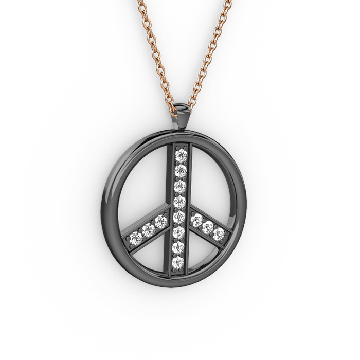 Beyaz zirkon ve swarovski 925 ayar siyah rodyum kaplama gümüş kolye (40 cm gümüş rolo zincir)