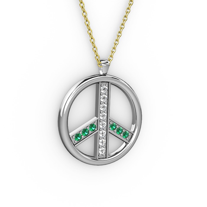 Beyaz zirkon ve yeşil kuvars 14 ayar beyaz altın kolye (40 cm altın rolo zincir)