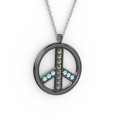 Dumanlı kuvars ve akuamarin 925 ayar siyah rodyum kaplama gümüş kolye (40 cm beyaz altın rolo zincir)