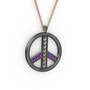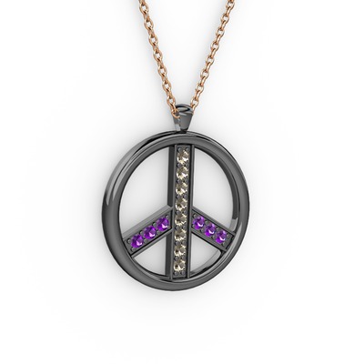 Dumanlı kuvars ve ametist 925 ayar siyah rodyum kaplama gümüş kolye (40 cm rose altın rolo zincir)