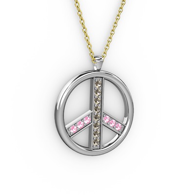 Dumanlı kuvars ve pembe kuvars 8 ayar beyaz altın kolye (40 cm altın rolo zincir)