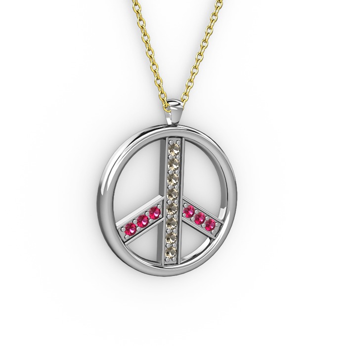Dumanlı kuvars ve rodolit garnet 14 ayar beyaz altın kolye (40 cm altın rolo zincir)