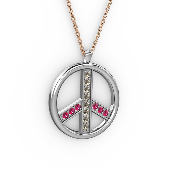 Dumanlı kuvars ve rodolit garnet 8 ayar beyaz altın kolye (40 cm gümüş rolo zincir)