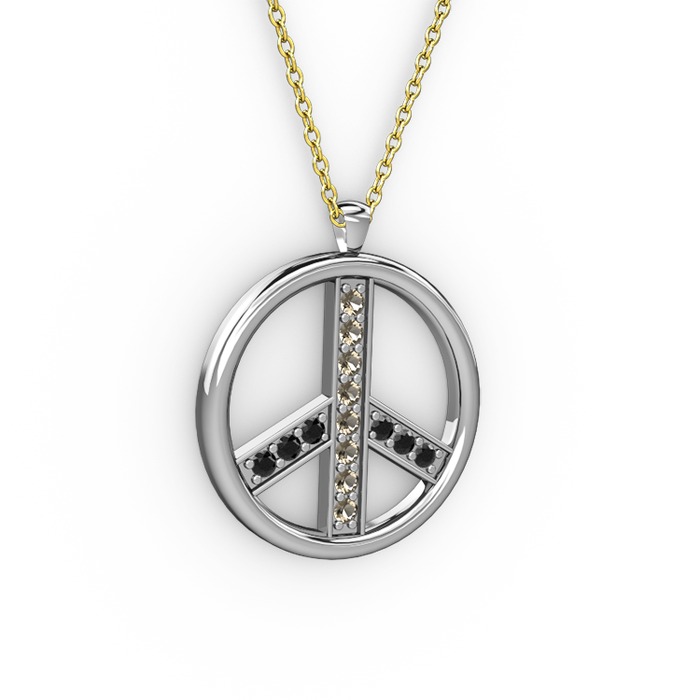 Dumanlı kuvars ve siyah zirkon 14 ayar beyaz altın kolye (40 cm altın rolo zincir)