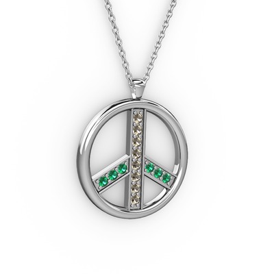 Dumanlı kuvars ve yeşil kuvars 925 ayar gümüş kolye (40 cm beyaz altın rolo zincir)