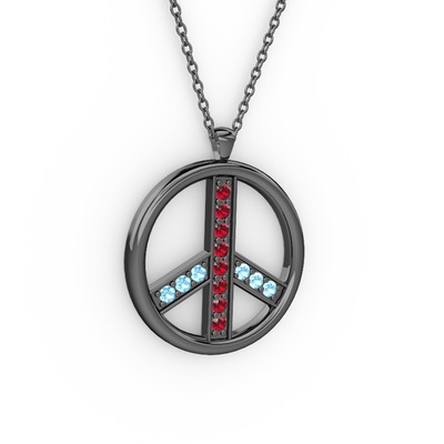 Garnet ve akuamarin 925 ayar siyah rodyum kaplama gümüş kolye (40 cm gümüş rolo zincir)