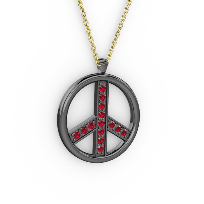 Garnet 925 ayar siyah rodyum kaplama gümüş kolye (40 cm altın rolo zincir)
