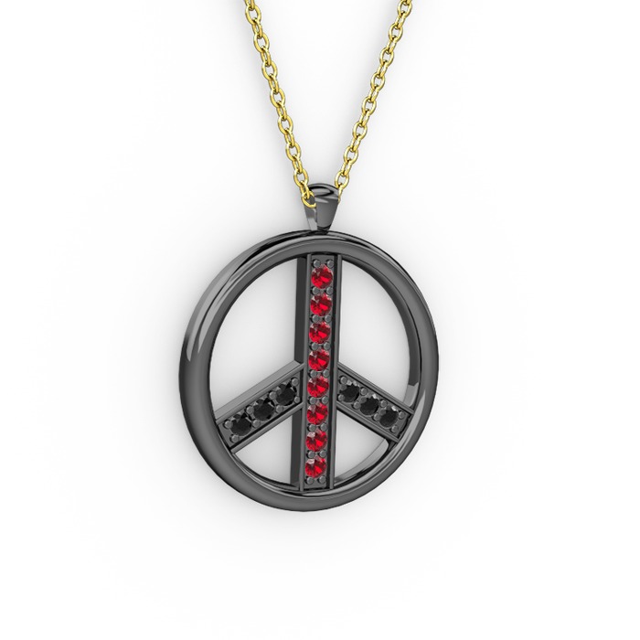 Garnet ve siyah zirkon 925 ayar siyah rodyum kaplama gümüş kolye (40 cm altın rolo zincir)