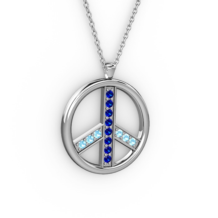 Lab safir ve akuamarin 925 ayar gümüş kolye (40 cm beyaz altın rolo zincir)