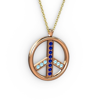 Lab safir ve akuamarin 925 ayar rose altın kaplama gümüş kolye (40 cm altın rolo zincir)