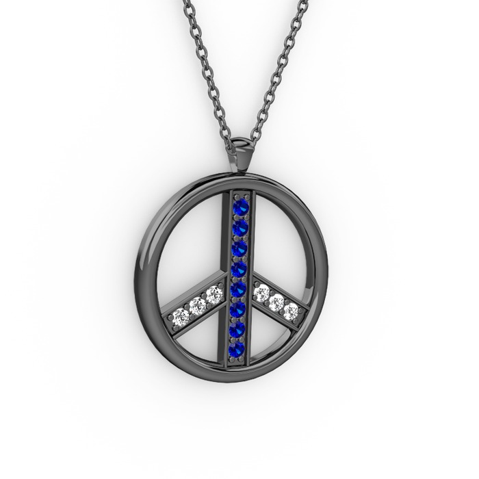 Lab safir ve beyaz zirkon 925 ayar siyah rodyum kaplama gümüş kolye (40 cm gümüş rolo zincir)