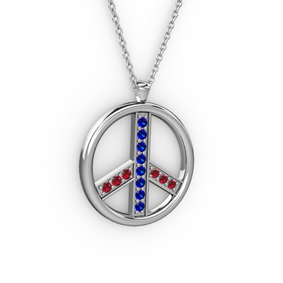 Lab safir ve garnet 18 ayar beyaz altın kolye (40 cm beyaz altın rolo zincir)