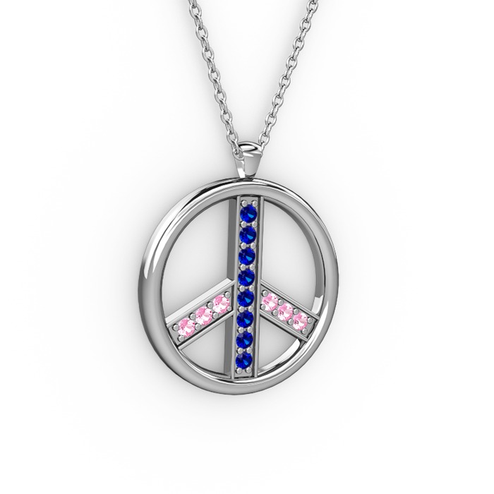 Lab safir ve pembe kuvars 8 ayar beyaz altın kolye (40 cm gümüş rolo zincir)
