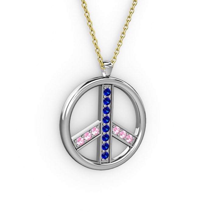 Lab safir ve pembe kuvars 925 ayar gümüş kolye (40 cm gümüş rolo zincir)