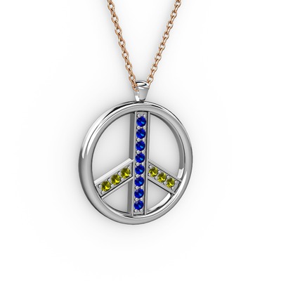Lab safir ve peridot 8 ayar beyaz altın kolye (40 cm gümüş rolo zincir)