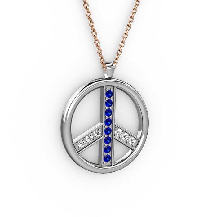 Lab safir ve pırlanta 18 ayar beyaz altın kolye (0.09 karat, 40 cm rose altın rolo zincir)