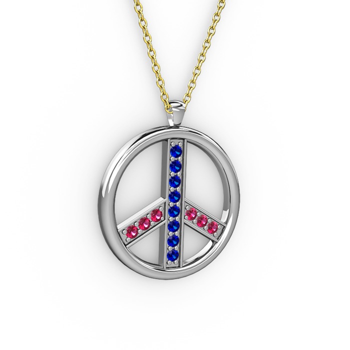 Lab safir ve rodolit garnet 8 ayar beyaz altın kolye (40 cm gümüş rolo zincir)