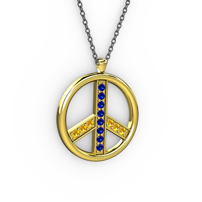 Lab safir ve sitrin 8 ayar altın kolye (40 cm gümüş rolo zincir)