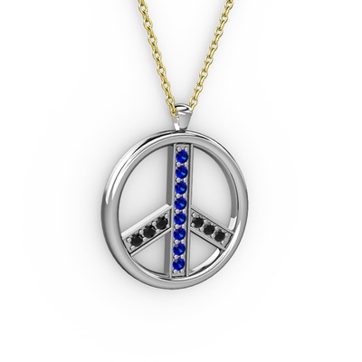 Lab safir ve siyah zirkon 925 ayar gümüş kolye (40 cm altın rolo zincir)