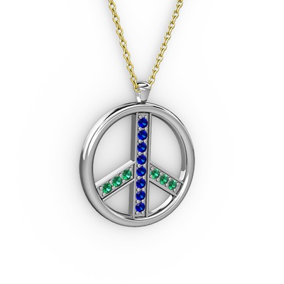 Lab safir ve yeşil kuvars 14 ayar beyaz altın kolye (40 cm altın rolo zincir)