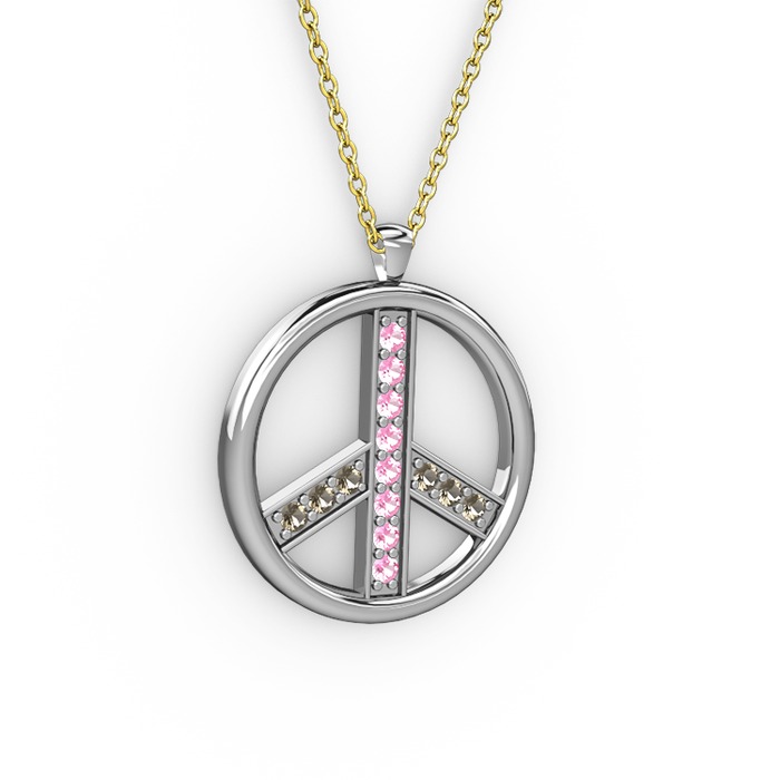 Pembe kuvars ve dumanlı kuvars 925 ayar gümüş kolye (40 cm altın rolo zincir)