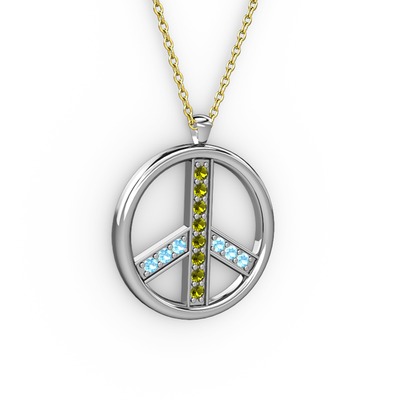 Peridot ve akuamarin 925 ayar gümüş kolye (40 cm altın rolo zincir)