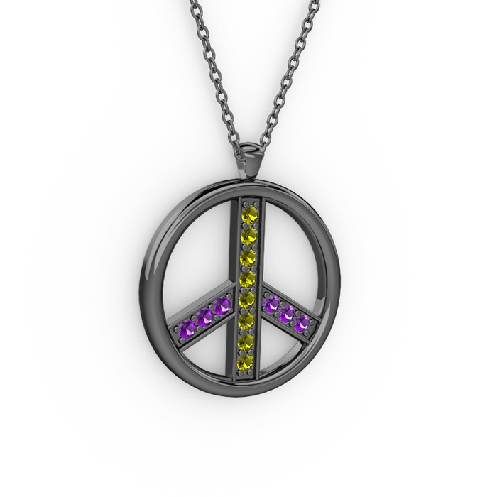 Peridot ve ametist 925 ayar siyah rodyum kaplama gümüş kolye (40 cm gümüş rolo zincir)