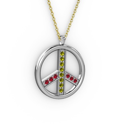Peridot ve garnet 8 ayar beyaz altın kolye (40 cm altın rolo zincir)