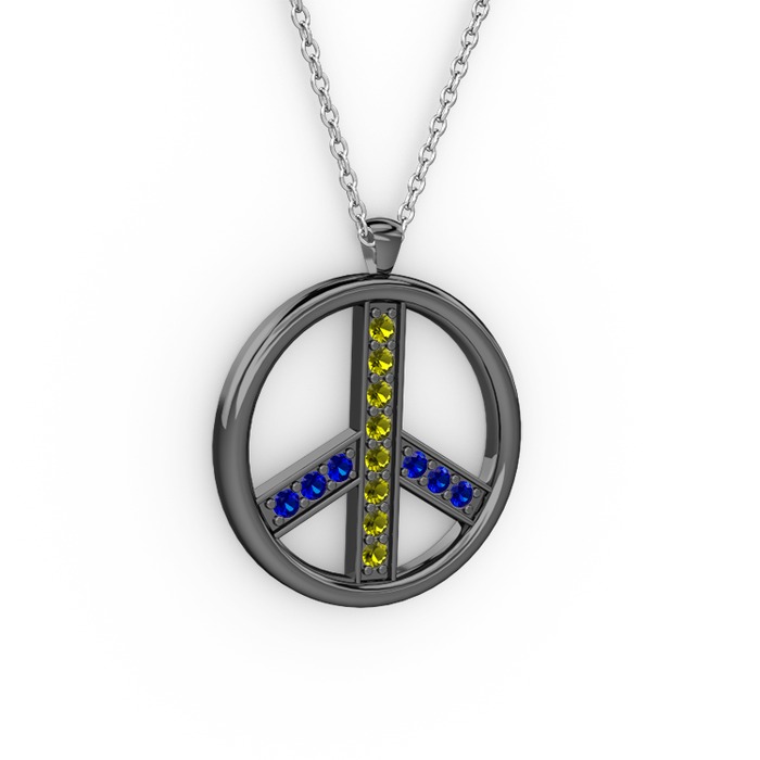 Peridot ve lab safir 925 ayar siyah rodyum kaplama gümüş kolye (40 cm gümüş rolo zincir)