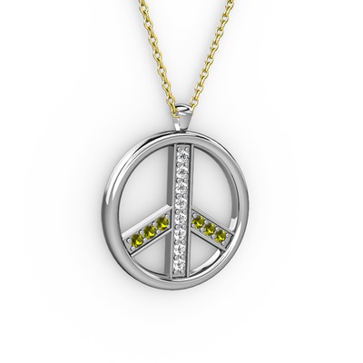 Pırlanta ve peridot 14 ayar beyaz altın kolye (0.12 karat, 40 cm altın rolo zincir)