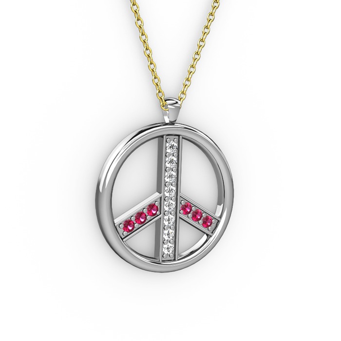 Pırlanta ve rodolit garnet 14 ayar beyaz altın kolye (0.12 karat, 40 cm gümüş rolo zincir)
